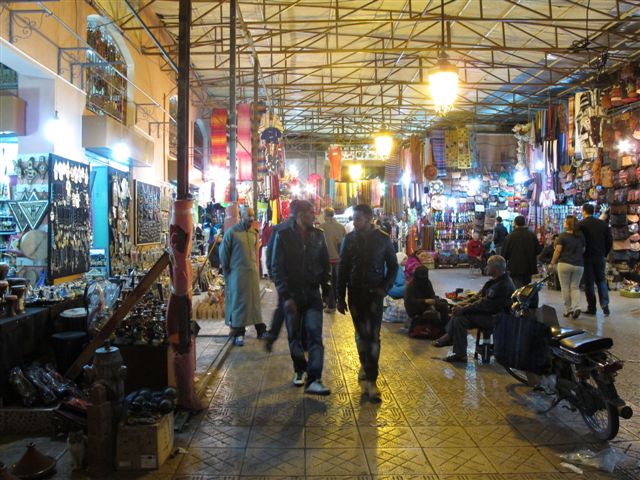Even verderop kom je in de souks (markt) terecht, een wirwar van sluipdoor-kruipdoor steegjes en straatjes. Hier vind je een kleurrijke verzameling van even zovele winkeltjes: kleuren, slippers en babouches, ijzerbewerkers, leerbewerkers etc.
