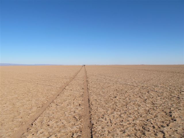 We trekken door uitgestrekte vlaktes zwarte steenwoestijn, waarin ineens een veld met prachtige bloemen voor je opdoemt, door verlaten grind- en zandvlaktes, met acacia’s en lage doornstruiken, soms een hagedis of eenzame vogel... en door prachtige goudgekleurde zandduinen, die vooral in het licht van de ondergaande zon een streling voor het oog zijn.