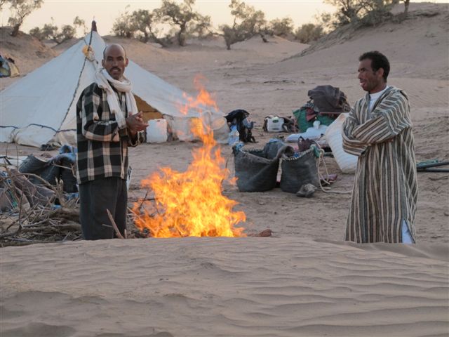 Wanneer we voldoende hout vinden maken we ’s avonds vuur en wordt er ’pain du sable’ gebakken. En wie weet trakteren onze begeleiders ons op hun traditionele zang, begeleid door het ritme van hun trommels...